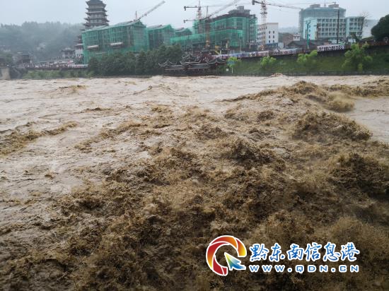 6月22日0時~22日7時,小江河(錦屏縣)上游的高釀、瑤江雨量站發(fā)生250.0m以上的特大暴雨,預(yù)計小江匯合口(清水江與小江匯合處)將于8點30分左右出現(xiàn)最高水位,水位變幅約6m,屬于大洪水。
