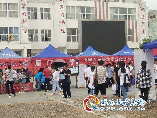 本網訊 (記者 蔡江蘭)6月26日,2018年貴州高考志愿填報現場咨詢活動凱里站在凱里一中順利舉行,本次活動由黔東南州招生院、貴州都市報聯合舉辦。來自全國各地的100余所高校的招生老師在咨詢活動現場擺攤設點,就 填報高考志愿的相關問題為考生和家長答疑解惑。