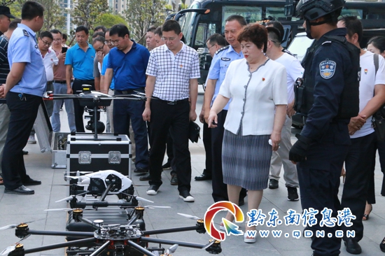 觀摩小組首先走進(jìn)的是警營(yíng)扶貧超市,據(jù)了解,警營(yíng)扶超市面積有50平米,由警務(wù)保障處安排專門(mén)人員對(duì)超市進(jìn)行管理,主要經(jīng)營(yíng)州公安局結(jié)對(duì)幫扶的三穗縣八弓鎮(zhèn)新寨村、雪洞鎮(zhèn)桃溪村等10個(gè)材農(nóng)戶養(yǎng)的雞、鴨、魚(yú)、蔬菜及其他農(nóng)副產(chǎn)品。在聯(lián)合指揮作戰(zhàn)中心觀摩點(diǎn),公安局民警為觀摩團(tuán)介紹了聯(lián)合作戰(zhàn)指揮中心共設(shè)5個(gè)作戰(zhàn)單元,各單元的相關(guān)系統(tǒng)與平臺(tái)、各項(xiàng)平臺(tái)有何功能以及聯(lián)合作戰(zhàn)指揮中心各個(gè)單元的相關(guān)信息。在警用裝備展示環(huán)節(jié),特警突擊隊(duì)、海警“海豚”小分隊(duì)等平常難得一見(jiàn)的警種悉數(shù)亮相,觀摩小組還在現(xiàn)場(chǎng)近距離接觸強(qiáng)聲波語(yǔ)音驅(qū)散器、無(wú)人偵察機(jī)、防盜門(mén)破折工具組、狙擊步槍等20余種警用裝備。