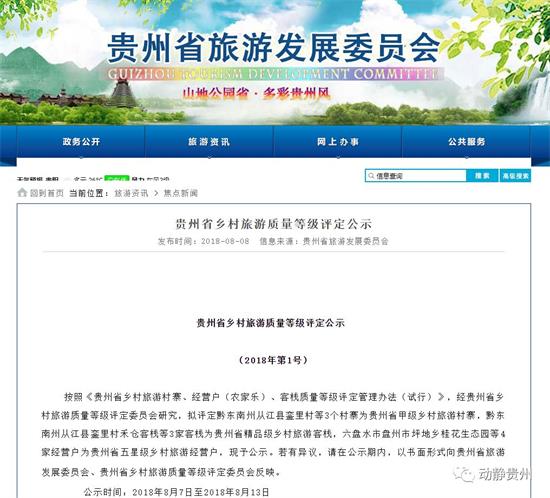 貴州省擬評定的精品級鄉村旅游客棧名單六盤水市:盤州市康養休閑園(客棧) 、 水城縣彝心彝意民俗酒店(客棧)
