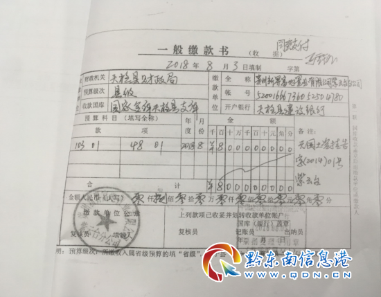 該公司將800萬元打入了天柱縣財政局的國庫賬戶