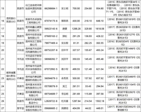 附:黔東南州銀行業(yè)“公示一批”嚴(yán)重失信人名單