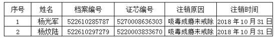 根據(jù)《公安部關(guān)于修改<機(jī)動(dòng)車駕駛證申領(lǐng)和使用規(guī)定>的決定》(公安部第139號(hào)令)第七十七條之規(guī)定,機(jī)動(dòng)車駕駛?cè)司哂斜徊楂@有吸食、注射毒品后駕駛機(jī)動(dòng)車行為,正在執(zhí)行社區(qū)戒毒、強(qiáng)制隔離戒毒、社區(qū)康復(fù)措施,或者長期服用依賴性精神藥品成癮尚未戒除的車輛管理所應(yīng)該注銷其機(jī)動(dòng)車駕駛證。根據(jù)規(guī)定,現(xiàn)將因吸毒成癮未戒除被注銷的駕駛證信息公告如下: