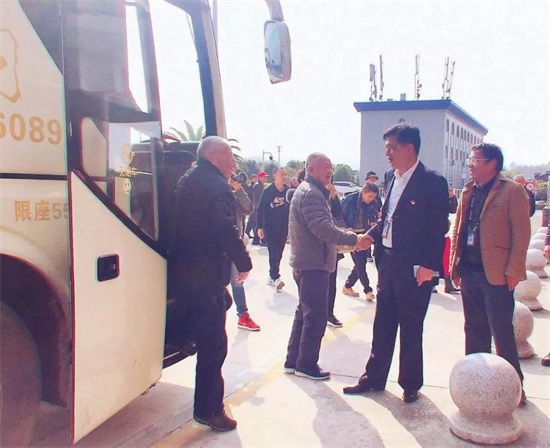 貴州省機場集團有限公司黎平機場分公司黨委書記、黎平機場改擴建項目指揮部指揮長潘志堅(右二)迎接老同志的到來