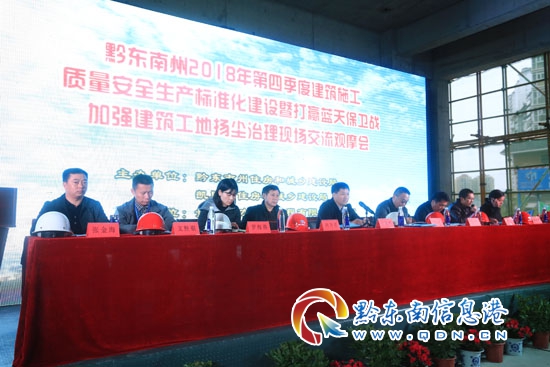 這里正在舉行的是黔東南州2018年第四季度建筑施工質量安全標準化暨打贏藍天保衛戰加強建筑施工揚塵治理現場觀摩會,來自省、州、各縣市住建部門以及部分建筑企業相關人員約100多人參加觀摩會。