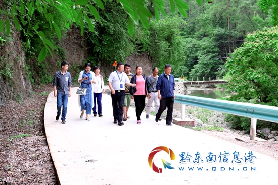 在此次調研中,還特別針對江凱村提出的困難加寬組組通公路邊緣一米的需求進行了實地勘查,為體驗加寬組組通公路邊緣一米的實際情況,楊貴平副總經理一行在炎熱的夏季不顧烈日的暴曬,步行3.1公里實地勘察。