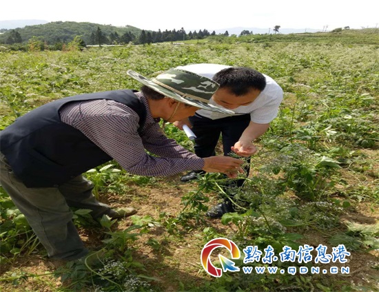 (圖為 信貸員與纈草種植技術(shù)員實(shí)地查看纈草生長(zhǎng)情況)