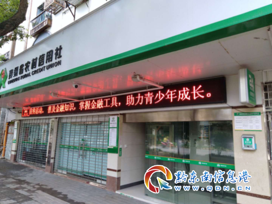 圖為 網(wǎng)點(diǎn)LED顯示滾動(dòng)播放宣傳標(biāo)語(yǔ)