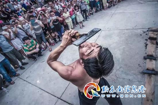 在7月28日這天,交下村不僅會邀請周邊十余個傳統村寨身著盛裝的小姑娘小伙子們,吹響蘆笙跳起蹈,為您展示最原生態的苗族歌舞秀。更是會表演交下苗家的獨有絕學——上刀山、下火海。