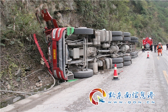經現場了解,該由于路段是彎道下坡,駕駛員在轉彎下坡時因掛車車身較長速度過快導致側翻。(周達)