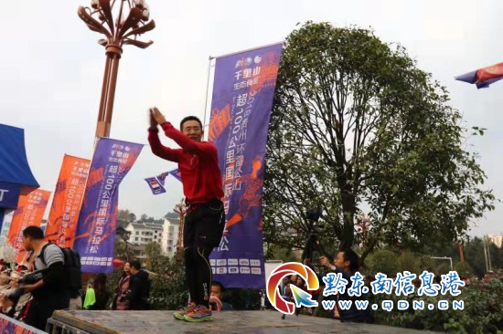 11月30日,2018貴州環雷公山超100公里國際馬拉松臺江賽段在秀眉廣場燃情開跑,臺江縣是2018貴州環雷公山超100公里國際馬拉松的第一站,同時也是臺江縣第一次作為超100馬拉松的賽場承辦本次賽事。 貴州省體育局副局長肖俊、 黔東南州人民政府副州長陳應勇、黔東南州人民政府副秘書長楊秀輝、黔東南州體育局黨組書記、局長胡素灤、黔東南州文體廣電局原局長張林、中共臺江縣委副書記、臺江縣人民政府縣長杜賢偉、中共臺江縣委常委、宣傳部部長潘道榮、多彩貴州體旅融合發展有限責任公司總經理、劉敏以及來自37個國家的參賽運動員、臺江縣各中小學的學生們參與本次馬拉松比賽開幕式。