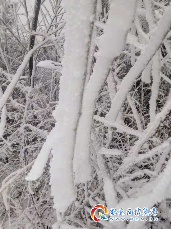 近日,受低溫天氣影響,貴州省臺江縣臺拱街道紅陽村海拔在1700米山頭的樹木草藤冰雕玉釹,被冰雪銀裝素裹,形成了一幅晶瑩如玉的冰封畫卷,引來了不少過往游客前往游玩和拍照留影。