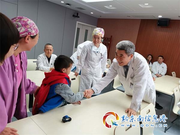 本網(wǎng)訊 出生后肺動(dòng)脈狹窄,靜脈引流異常,感冒發(fā)燒不斷,一度行走困難的先天性心臟病患兒李建明經(jīng)過北京阜外醫(yī)院醫(yī)護(hù)人員精心治療和護(hù)理12月27日康復(fù)出院,踏上返回臺(tái)江老家路。