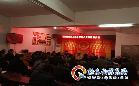 本網訊 為了盡快貫徹落實總行 “春天行動”方案要求, 1月18日,石洞支行在石洞鎮政府會議室召開信用工程及清收不良貸款動員會,石洞鎮政府干部職工、村支兩委及石洞支行員工共90余人參加會議。會議由石洞鎮鎮長徐業霞主持。
