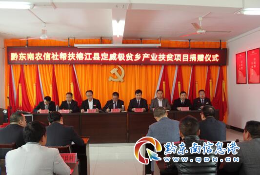 本網訊 為助推榕江縣定威鄉脫貧攻堅工作,加大資金幫扶。3月22日,楊仁君董事長參加了“黔東南農信社幫扶榕江縣定威極貧鄉產業扶貧項目捐贈儀式”。