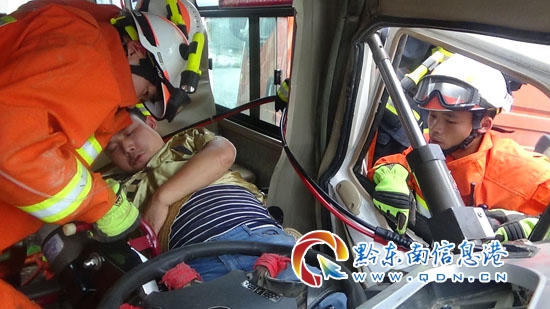本網訊 6月12日下午17時許,天柱縣社學鄉社學往芹香寨方向發生車禍,一輛大貨車與小客車相撞,導致小客車駕駛員被困車內,情況緊急。當地消防接警后迅速趕赴現場實施救援,經過20分鐘的緊急救援,成功救出被困司機。