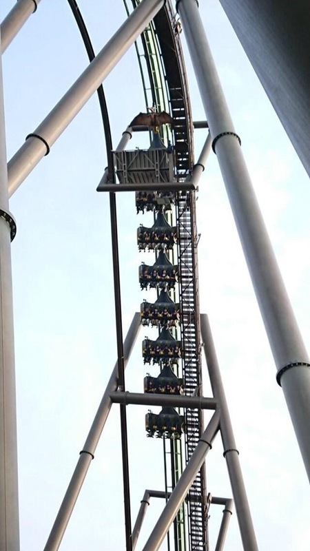 據(jù)工作人員排查,其中一輛過山車發(fā)動機(jī)相關(guān)零件出現(xiàn)異常,傳感器因此發(fā)出故障訊號,導(dǎo)致過山車自動剎閘。工作人員更換了問題零件,當(dāng)日晚上7點,過山車重新投入運行。