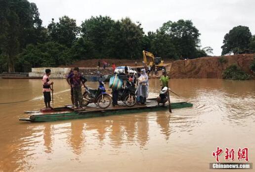 當(dāng)?shù)貢r(shí)間2018年7月25日,越南阿速坡省Sanamxai,色貢河水位上漲,民眾使用簡(jiǎn)易木筏過(guò)河。