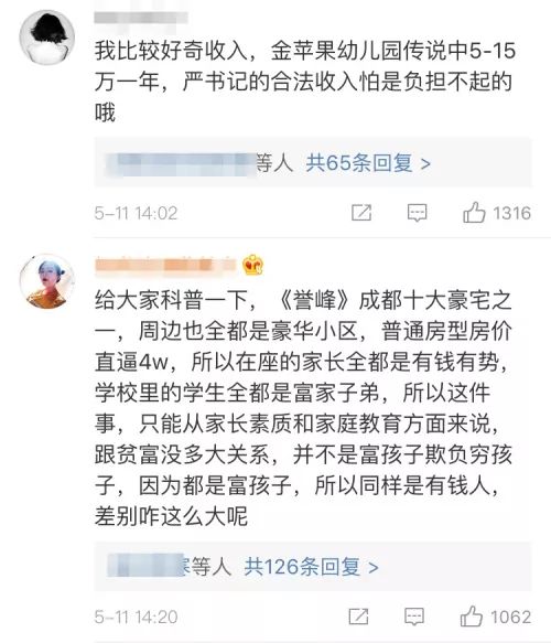 評(píng)論區(qū)還有網(wǎng)友爆料,金蘋果幼兒園學(xué)費(fèi)、周邊房?jī)r(jià)都是“貴族”水平。