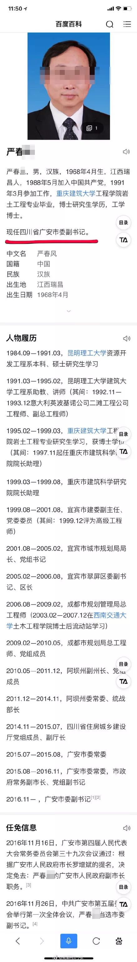 @成都網(wǎng)友小張 搜出了“嚴(yán)書記”的履歷。