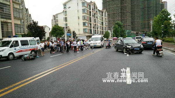 6月8日下午,記者從現場居民處了解到,當天上午11時30分許,正值放學時段,在袁州區下浦街道徐田小區門口,一輛轎車與一輛接小孩回家的電動車相撞,電動車上3人均受傷,傷勢最為嚴重的是乘坐電動車的男孩,其腿被撞斷。此時,正好有兩名交警巡邏路過,見到受傷的男孩躺在滿是積水的道路上,一名交警因擔心孩子的安危,趕緊上前抱住男孩,為避免造成二次傷害,交警顧不得地上的積水,立馬坐下讓孩子靠在自己身上,握著孩子的手在他耳邊不停地鼓勵,直到120急救車到來。