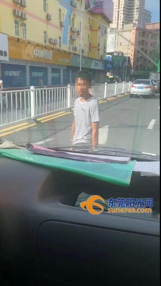 據網友反映,該名男子在常平木棆市場附近搶了兩個箱子后扔到木棆河,隨后,又持刀來到東興路和東園路口附近,攔截運鈔車。
