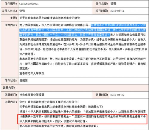 新浪財(cái)經(jīng)訊 6月27日消息,宜春市一老年大學(xué)學(xué)員在市人力資源和社會(huì)保障局官網(wǎng)建議:鼓勵(lì)市民主動(dòng)申請(qǐng)放棄領(lǐng)取養(yǎng)老金。該發(fā)帖人稱(chēng):我市市民要多為國(guó)家想,現(xiàn)在養(yǎng)老金緊缺,大家不能只顧自己不顧國(guó)家,對(duì)于這種只顧自己利益的行為,卻不為國(guó)家考慮的個(gè)人,已經(jīng)喪失了做人的基本資格,應(yīng)該受到法律的嚴(yán)懲,建議沒(méi)收財(cái)產(chǎn),直接驅(qū)逐出境。