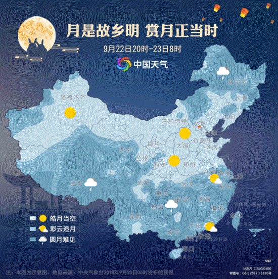 圖為2018年中秋假期(9月22-24日)賞月天氣預測