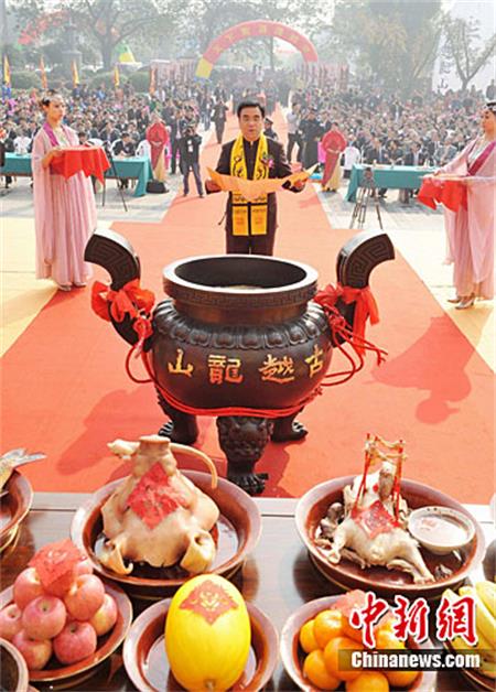 資料圖:立冬節(jié)氣,紹興釀酒工人正在進(jìn)行傳統(tǒng)的古越龍山紹興黃酒開釀儀式。 袁云 攝