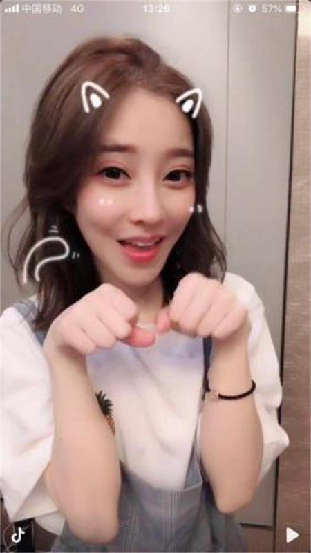 人氣主播馮提莫在表演“學貓叫” 圖片來源:抖音截圖