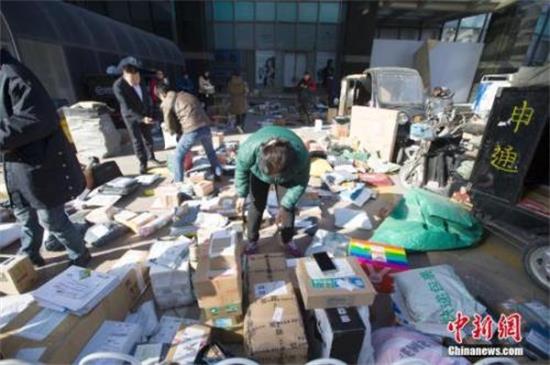 資料圖:“雙11”期間物流工作人員正在分揀快遞。 張云 攝