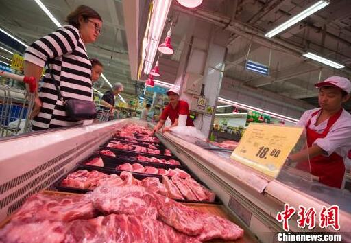 資料圖:民眾在超市購(gòu)買豬肉。張?jiān)?攝