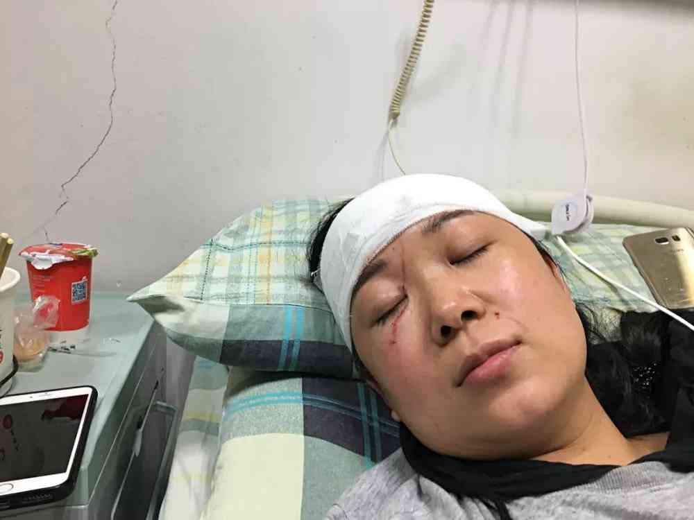 29日下午三點過,記者在醫院急診科病房見到了受傷的孫女士,只見其額頭包著厚厚的紗布,右臉還有一條長長的傷痕。