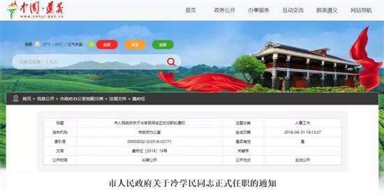 遵義市人民政府關于冷學民同志正式任職的通知