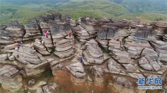 在貴州省松桃苗族自治縣盤石鎮有一處紅石林景觀,山石奇特,吸引眾多游人。