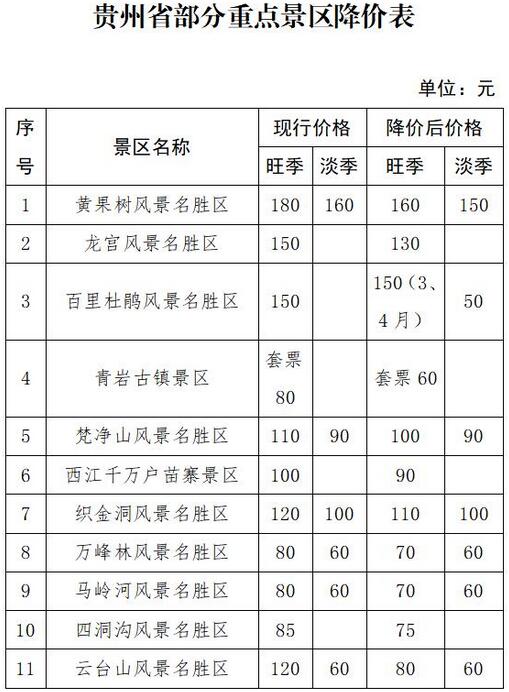 9月20日,貴州省發改委下發通知,決定降低貴州省黃果樹等部分重點國有景區門票價格,降價幅度在10元至100元之間