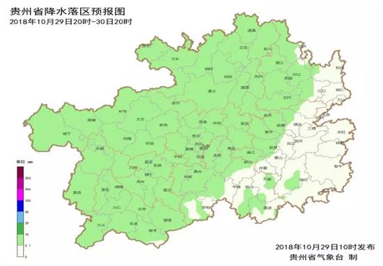 29日夜間到30日白天,省的東南部邊緣多云,其余地區陰天有小雨,地勢高處有雨霧;