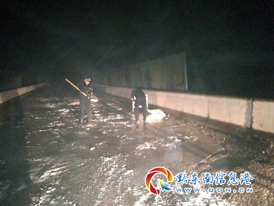 凝凍開始至今,截止1月7日12時,鎮遠公安出動警力500人次,出動警車60臺次,巡查車時967小時,實施清(排)障62起,撒鹽3噸、防滑砂3方,使用警示牌35塊。(龍冠宇 龍軍)