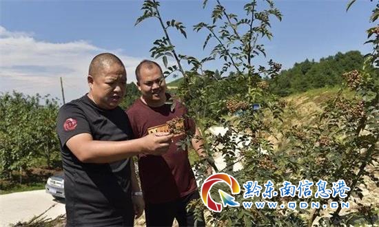鎮遠縣天之地農業發展有限責任公司董事長孫燕華(左一)在察看無刺大紅袍花椒長勢