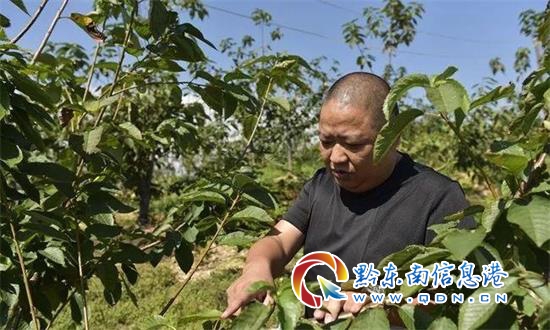 鎮遠縣天之地農業發展有限責任公司董事長孫燕華在察看車厘子長勢