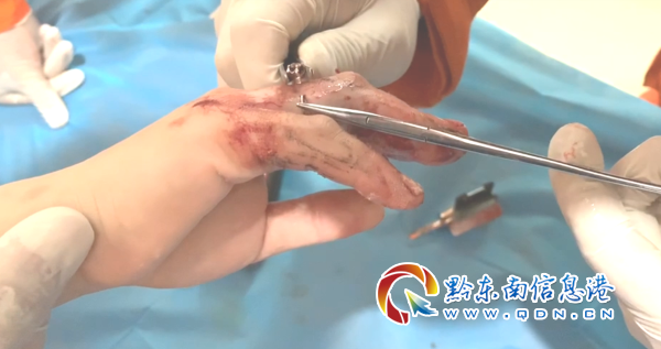 消防員到達現場后,經現場詢問得知,該病人因為早上和面時右手不慎被和面機擠壓,導致戴著的戒指嚴重變形,手指已經變腫,大面積創傷,需將戒指取下治療。指揮員經過觀察后,迅速下達作戰命令,一名消防員負責固定住該病人的手,另一名消防員使用之環切割機對戒指進行切割。
