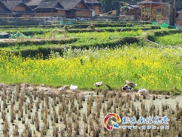 本網(wǎng)訊 陽(yáng)春三月、春暖花開(kāi),從江縣丙妹鎮(zhèn)鑾里侗寨桃花盛開(kāi),青山、綠水、風(fēng)雨橋、水車(chē)、侗寨、鼓樓在陽(yáng)光下編織一幅美麗的畫(huà)卷。(楊富松)