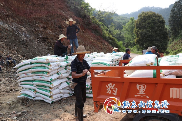 本網(wǎng)訊 4月25日,從江縣西山鎮(zhèn)一大早就熱鬧了起來,4輛滿載有機(jī)復(fù)合肥的大卡車駛?cè)霛L郎、岑杠、大丑等6個村寨,各村貧困戶們有的開著農(nóng)用三輪車,有的開著小貨車紛紛趕到分配點(diǎn)免費(fèi)領(lǐng)取肥料。在鎮(zhèn)扶貧站工作人員和村干的幫助下,各村貧困戶紛紛按照畝數(shù)領(lǐng)取農(nóng)用有機(jī)復(fù)合肥。看著領(lǐng)到的化肥,貧困戶臉上露出了喜悅的笑容。