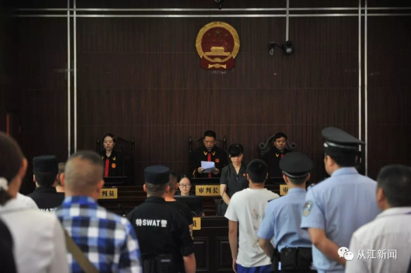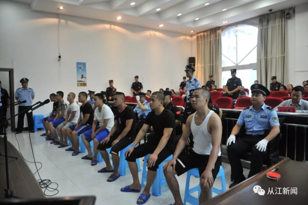 7月19日上午,從江縣人民法院公開宣判被告人任劍江、陳松、羅增林、呂曉輝、劉凱波、石偉、張貴有、韋子強涉惡案,被告人任劍江犯非法持有槍支罪、強迫交易罪、聚眾斗毆罪,依法判處有期徒刑十一年,罰金人民幣50000元;被告人陳松犯強迫交易罪、聚眾斗毆罪,依法判處有期徒刑六年零六個月,罰金人民幣50000元;被告人羅增林、呂曉輝、劉凱波、石偉、張貴有、韋子強犯聚眾斗毆罪,依法判處有期徒刑四年至二年零一個月不等的刑罰。對被告人任劍江、陳松強迫交易犯罪所得人民幣249028元繼續(xù)追繳;對扣押在案的作案工具砍刀九把、車牌號為貴HHC191的白色東風本田車一輛予以沒收。