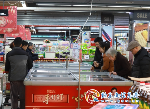 本網訊 當日,是農歷正月十五元宵節,在丹寨縣龍泉鎮的一家購物超市,人們在選購湯圓,歡度元宵佳節。(陸德華 攝)