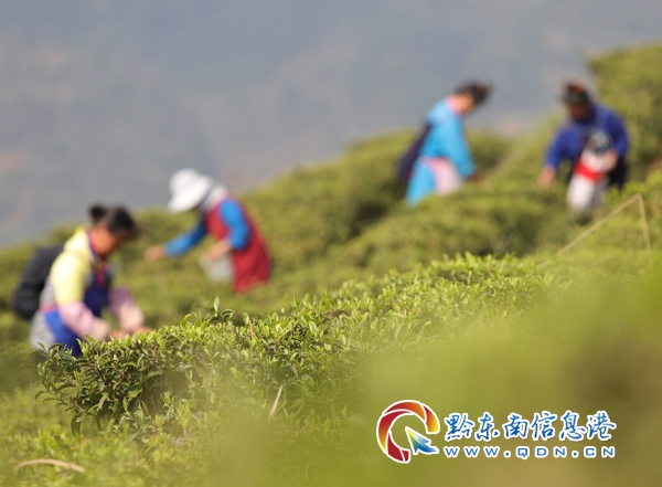 本網訊 3月21日,是農歷二十四節氣中的春分,在丹寨縣龍泉鎮羊甲茶園,采茶工人正在搶抓時機采摘春茶,茶園呈現出一派繁忙景象。(陸德華 攝)