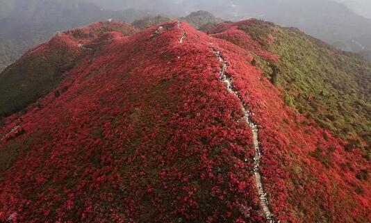 龍泉山的紅杜鵑生長于90年代,杜鵑花林分布在山體的中上都,海拔1200-1300米之間。龍泉山山上主要以紅杜鵑為主,而山腳就分布著大量其他顏色的杜鵑,每年四五月,龍泉山被紅、白、紫三色杜鵲花所覆蓋,萬畝杜鵑,優(yōu)美壯觀,能映紅半邊天。