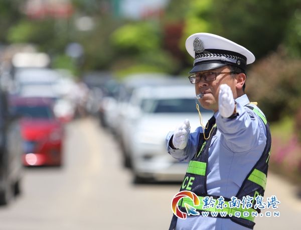 本網訊 “五一”小長假第一天,丹寨縣的龍泉山景區和萬達小鎮迎來了眾多迎客前來觀光旅游,在帶來經濟效益的同時,也給道路交通帶來了巨大壓力。為此,丹寨縣交警大隊積極組織警力對轄區易擁堵路段進行管控和疏導,確保了轄區道路的安全暢通,同時,頭頂烈日,堅守崗位的執勤交警也成了過往游客眼中的一道獨特風景。(陸德華 攝)