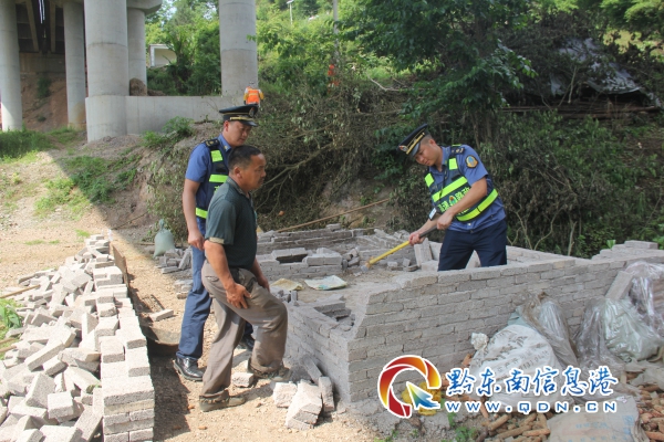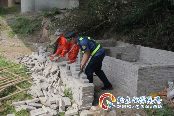 2019年5月22日,丹寨路政執(zhí)法大隊聯(lián)合轄段養(yǎng)護部門,與村民一起將剩下水泥墻體部分拆除完畢。