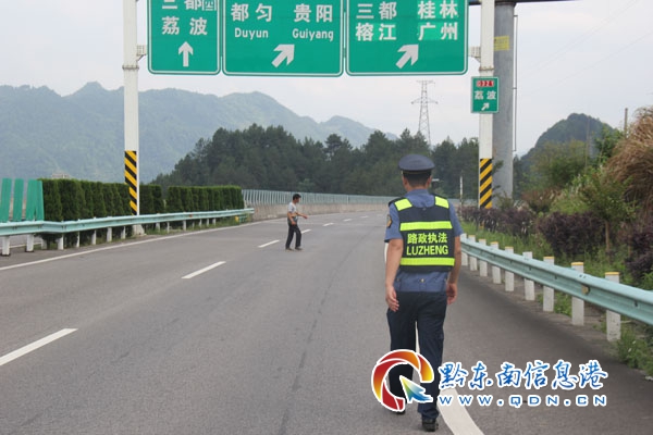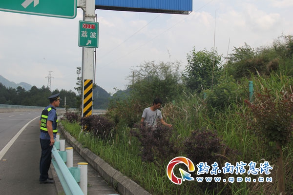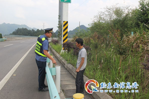 行人上高速一直是一個很嚴峻的難題,丹寨路政執法大隊會加大巡查力度,增強對附近村寨安全知識的宣傳力度,確保過往司乘人員的行車安全及財產安全。(梁明輝 攝影報道)